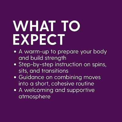 Learn foundational pole moves like spins and sits with a focus on proper technique and confidence