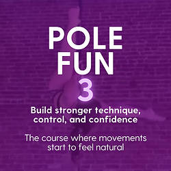 Prerequisite: Completion of Pole Fun-damentals 1 and 2 required. This course builds on skills from Pole Fun-damentals 1 and 2, focusing on stronger execution of Knee Locks, Pole Sits, Wrist Sits, Climbing, and Inverting. Many call Pole Fun-damentals 3 the ""magic course,"" that moment when movements start feeling natural! What to Expect: Sharper spins, transitions, and techniques from previous courses Increased focus on strength, control, and smooth movement More consistent inverting with better body awareness Coaching focused on building competence and comfort What to Bring: Grip-friendly pole wear (shorts and a fitted top) Water bottle Knee pads Pole grip (optional; check our blog for recommendations) This is where skills click, confidence grows, and your pole practice feels truly yours.